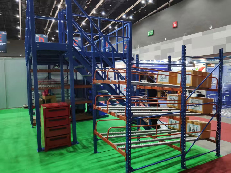 由公司外貿部同事參加2019年泰國曼谷國際物流展,參展展品有重型貨架、貨架平臺、穿梭式貨架、流利式貨架等?;I備工作已完成,今天展會正式開始,為期3天8.29-8.31。